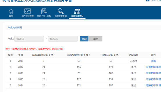 专业技术人员继续教育网上学习开通后,有不少老师因之前未能及时学习或报名,导致继续教育学时不通过。请关注河南省专业技术人员公共服务平台的个人账户,检查之前继续教育专业课的完成情况,如需补学之前的专业课程,请填写表格,并将表格以系部处室为单位,发至zzsxcjc@163.com,截至日期为11月16日(本周五)。