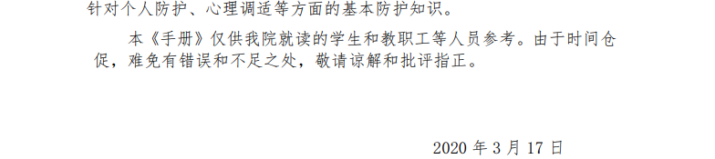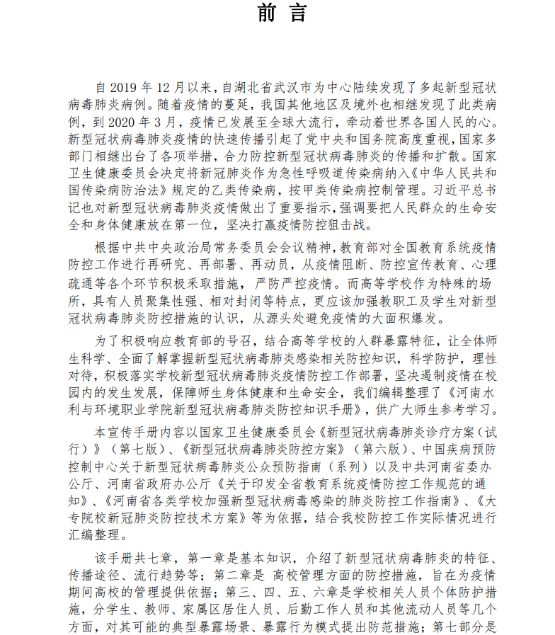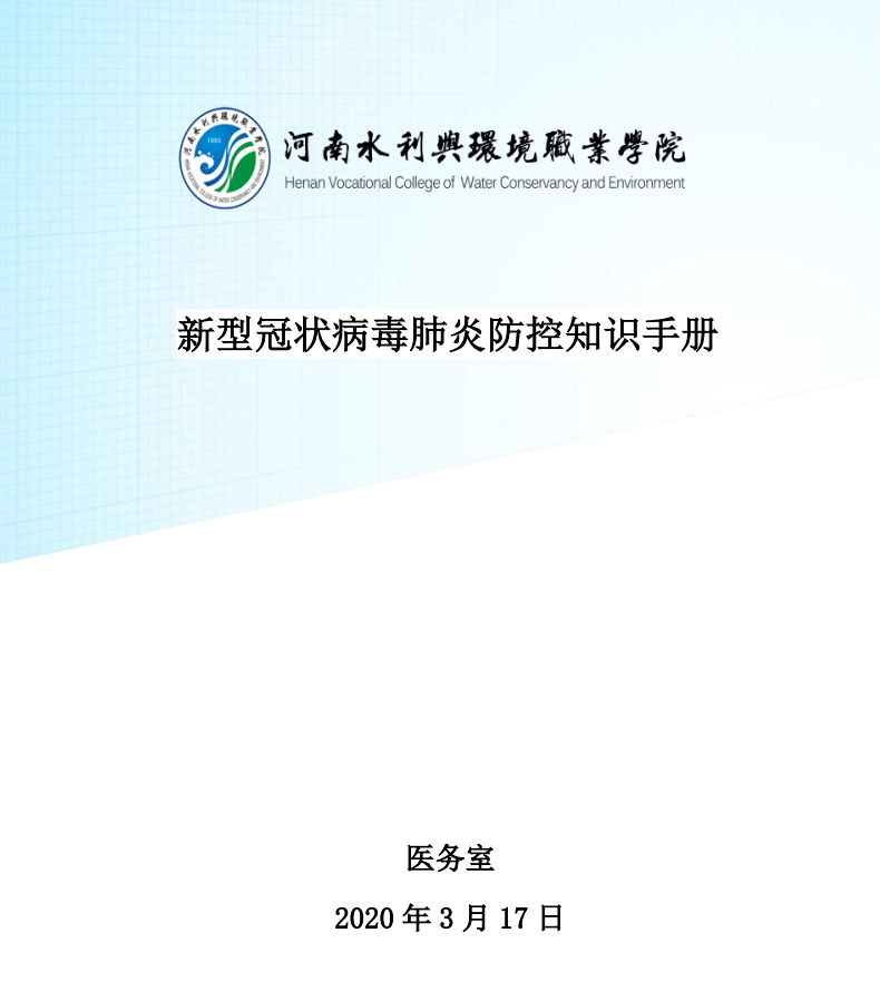 为积极落实学校新型冠状病毒肺炎疫情防控工作部署,保障师生身体健康和生命安全,我院后勤服务中心医务室编辑整理了《ylzzcom永利总站线路检测新型冠状病毒肺炎防控知识手册》。本手册共分为七章,涉及基本知识,高校管理方面的防控措施,学校学生、教师、家属区居住人员、后勤工作人员和其他流动人员等相关人员防护措施及心理调适等个人防护事项,供广大师生员工参考学习。