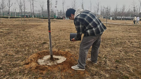 活动前,同学们积极响应,广泛宣传。活动中,同学们挥锹铲土、扶苗填坑、提水浇灌,用实际行动守护校园。活动后,同学们通过QQ邮箱上传参与浇树、养护植物的照片,记录他们为环保做出的努力。