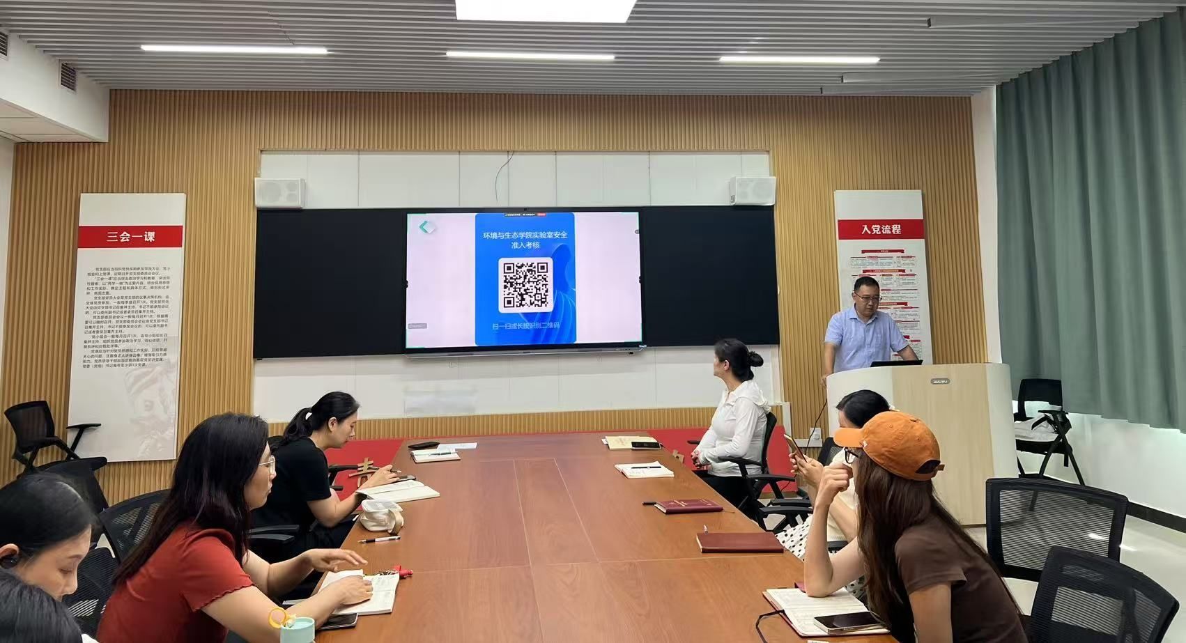 会议围绕实验室安全教育、暑期工作部署、安全大检查三个方面展开。教学科研办公室主任郭朔泽以《安全第一 预防为主:环境与生态学院实验室安全实践》为题,从“实验室危险因素、实验室环境安全、实验室药品管理、案例分析”四个维度,系统讲解了实验室安全管理核心要点,为全体教职工开展了深入的安全教育。
