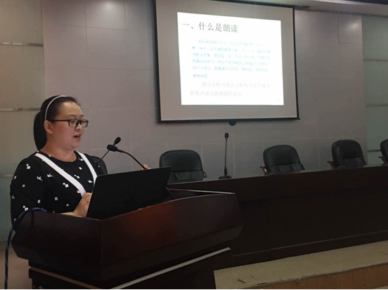 5月8日下午5点,在我院图书馆一楼学术报告厅,针对“世界读书日”读书系列活动——经典诵读,图书馆特别邀请了我院老师邵林为参与报名的近100名同学进行培训。邵林老师和同学们一起,针对朗读的艺术魅力及技巧进行剖析、分享和交流,教给学生对声音语言进行有效再创作,学会朗读的技巧,做到能朗读、会朗读、懂朗读。邵林老师的讲座感染了到场的每位同学。通过本次培训使大家对朗读有了更新和更深刻的认识。