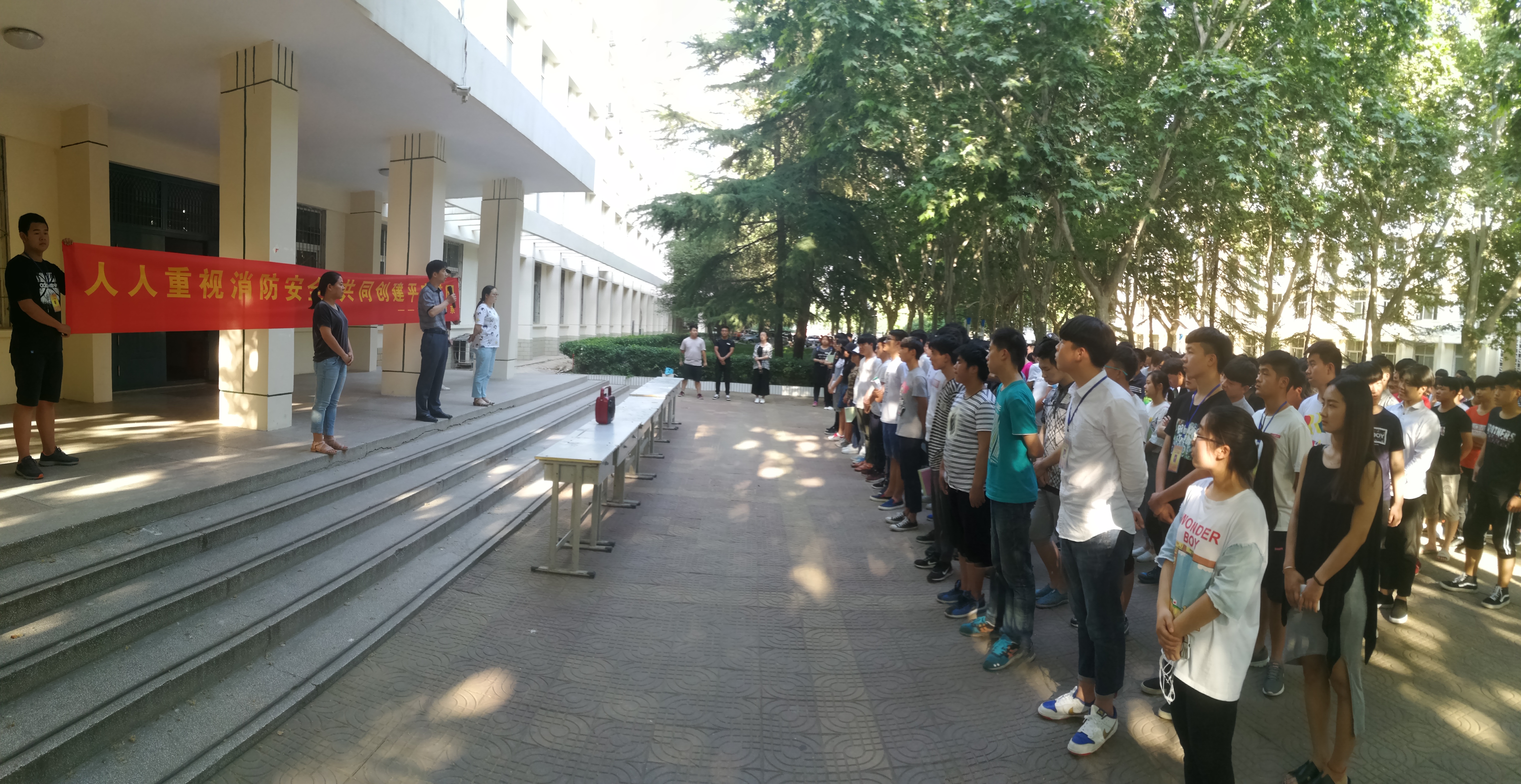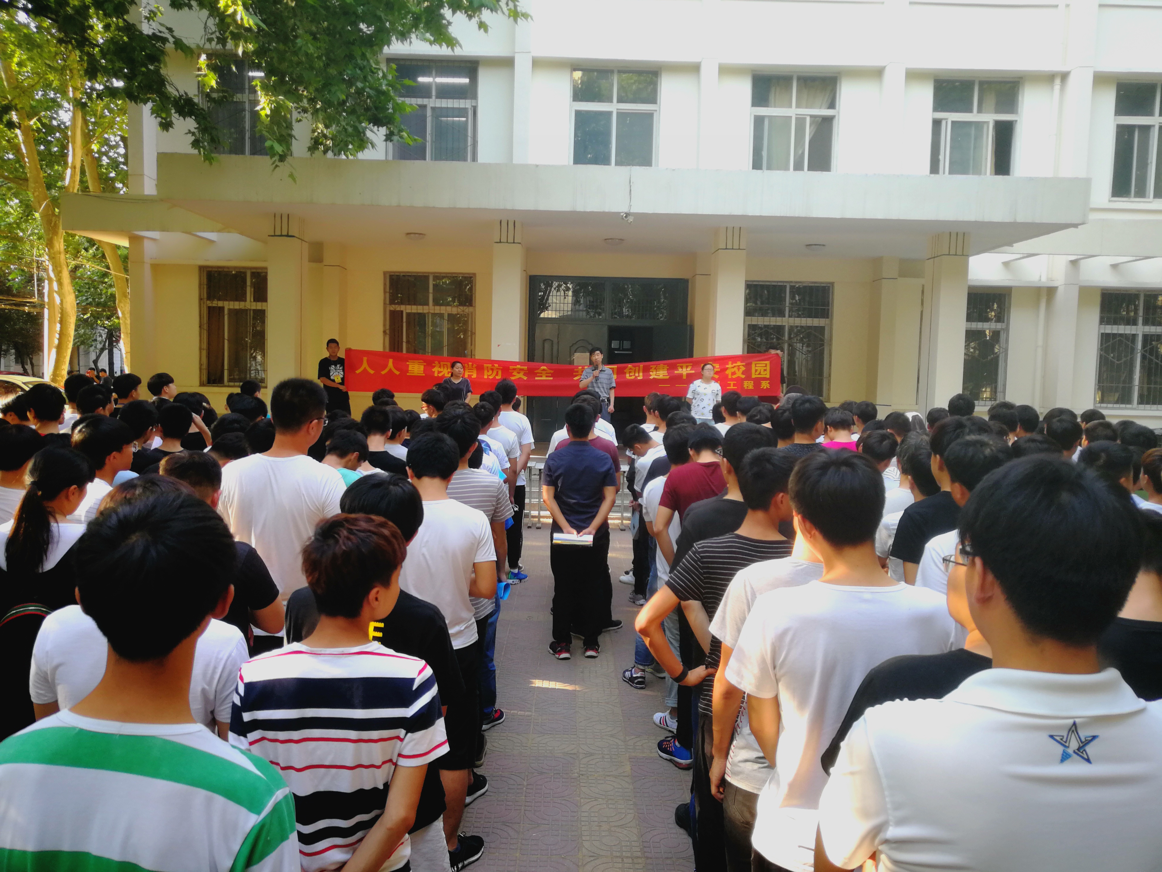 为普及消防安全知识,提高师生消防安全意识5月25日下午,水利工程系在实验楼前举行“人人重视消防安全 共同创建和谐校园”为主题的消防安全签字仪式活动。系副主任王建军、系部老师及200余名学生参加。