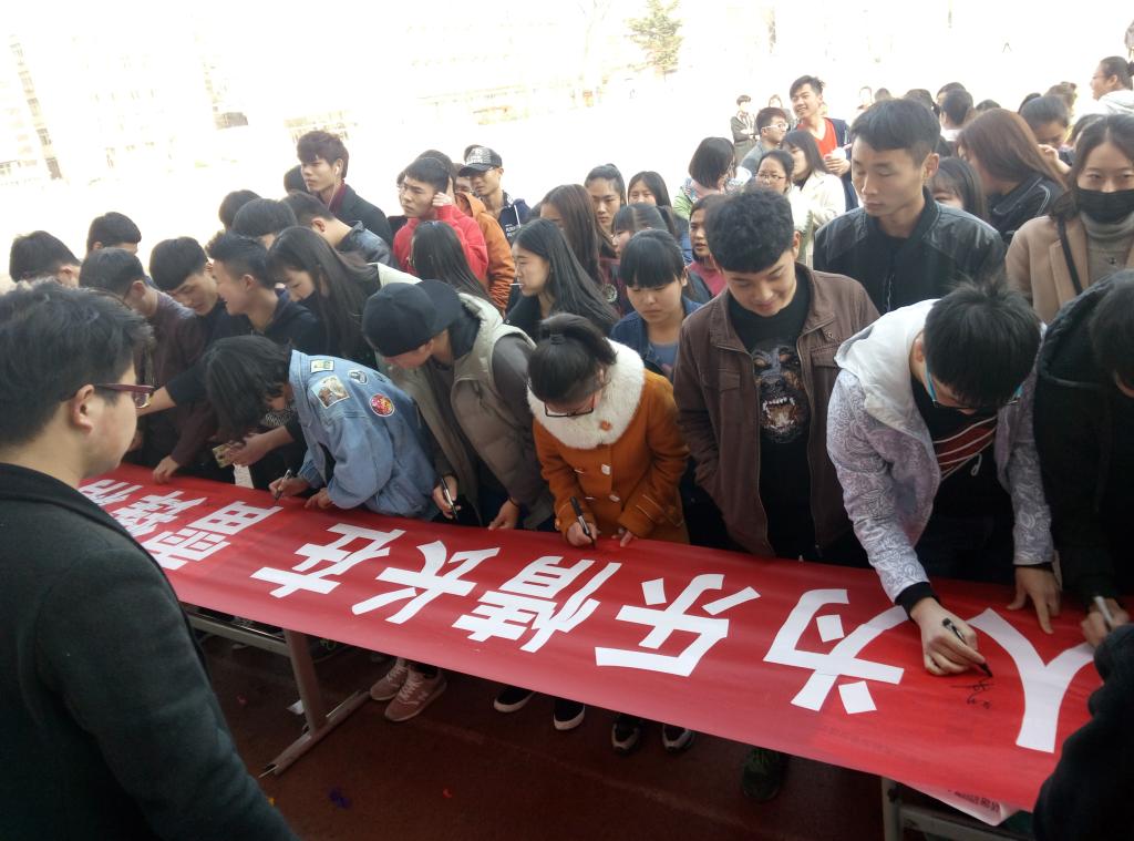 为纪念雷锋同志、发扬雷锋精神,经济管理系于2017年3月7日在运动场举行了“雷锋精神我传承”签字活动。同学们纷纷在“助人为乐情雷锋精神心永存”的横幅上签字。本次活动传播了“奉献、友爱、互助、进步”的志愿服务精神,加强了同学们学习雷锋精神的信念。