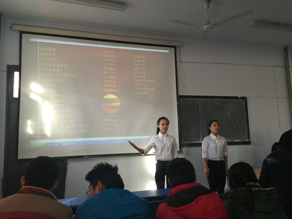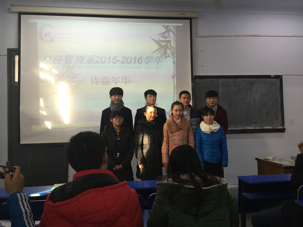 为弘扬中国传统文化,传承诗歌文明,2015年12月15日下午经济管理系在实验楼二阶举办了“诗意年华”诗歌朗诵比赛。