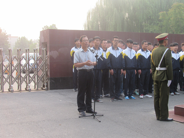 仪式上,国旗护卫队员们迈着整齐的步伐,护送国旗入场。伴随着庄严嘹亮的国歌,五星红旗冉冉升起,全体师生怀着崇敬与喜悦的心情,凝视着迎风飘扬的五星红旗。141023班同学兰乾坤发表主题“铭记历史,勿忘国耻”演讲系党支部书记文琳在讲话中介绍了有关中国历史的重大事件,要求同学们学习历史,了解历史奋发图强,报效祖国。