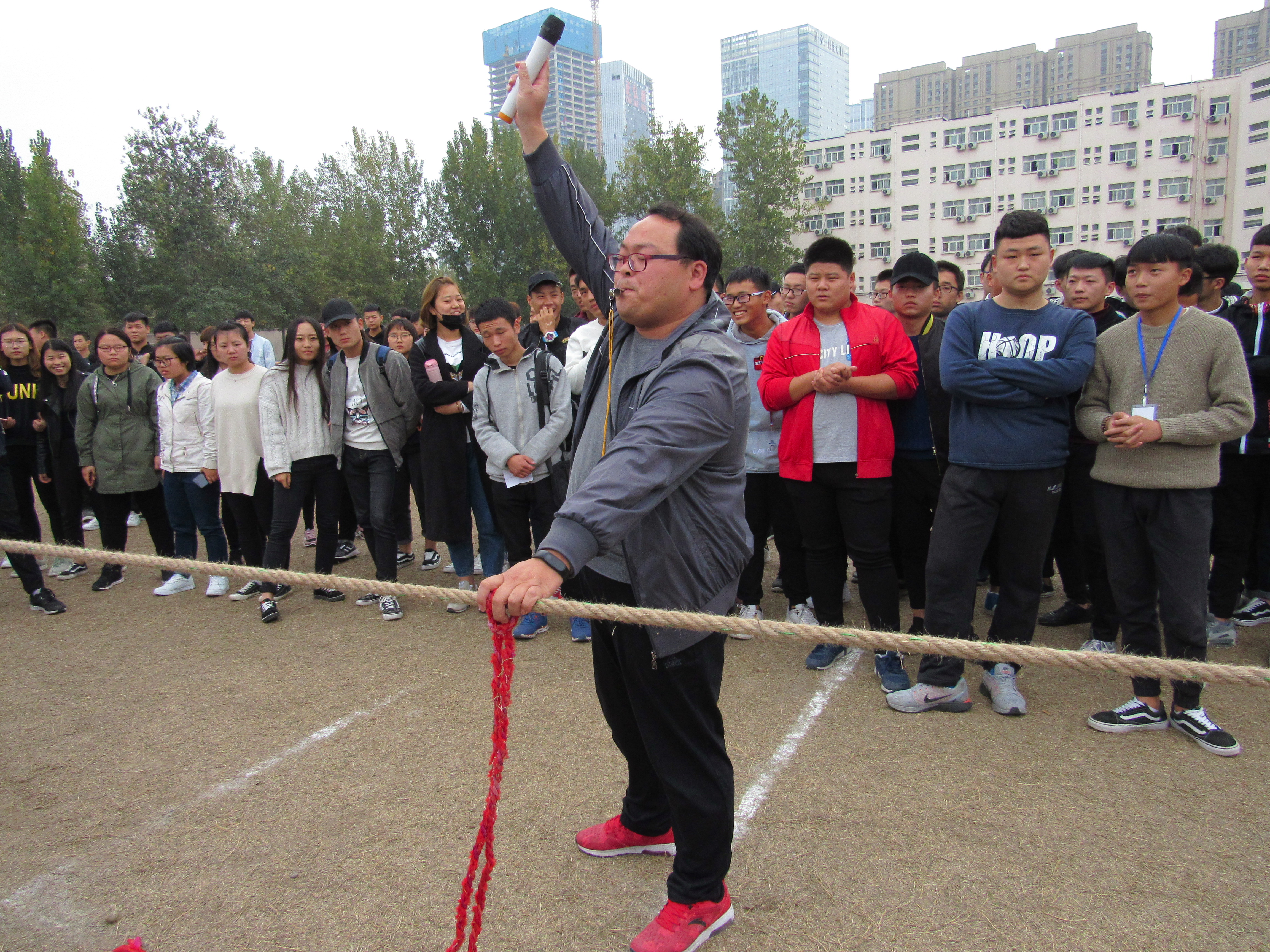 为丰富学生的精神文化生活,增强班级凝聚力,促进班级之间交流,土木工程系于2017年10月31日举办了迎新拔河比赛。