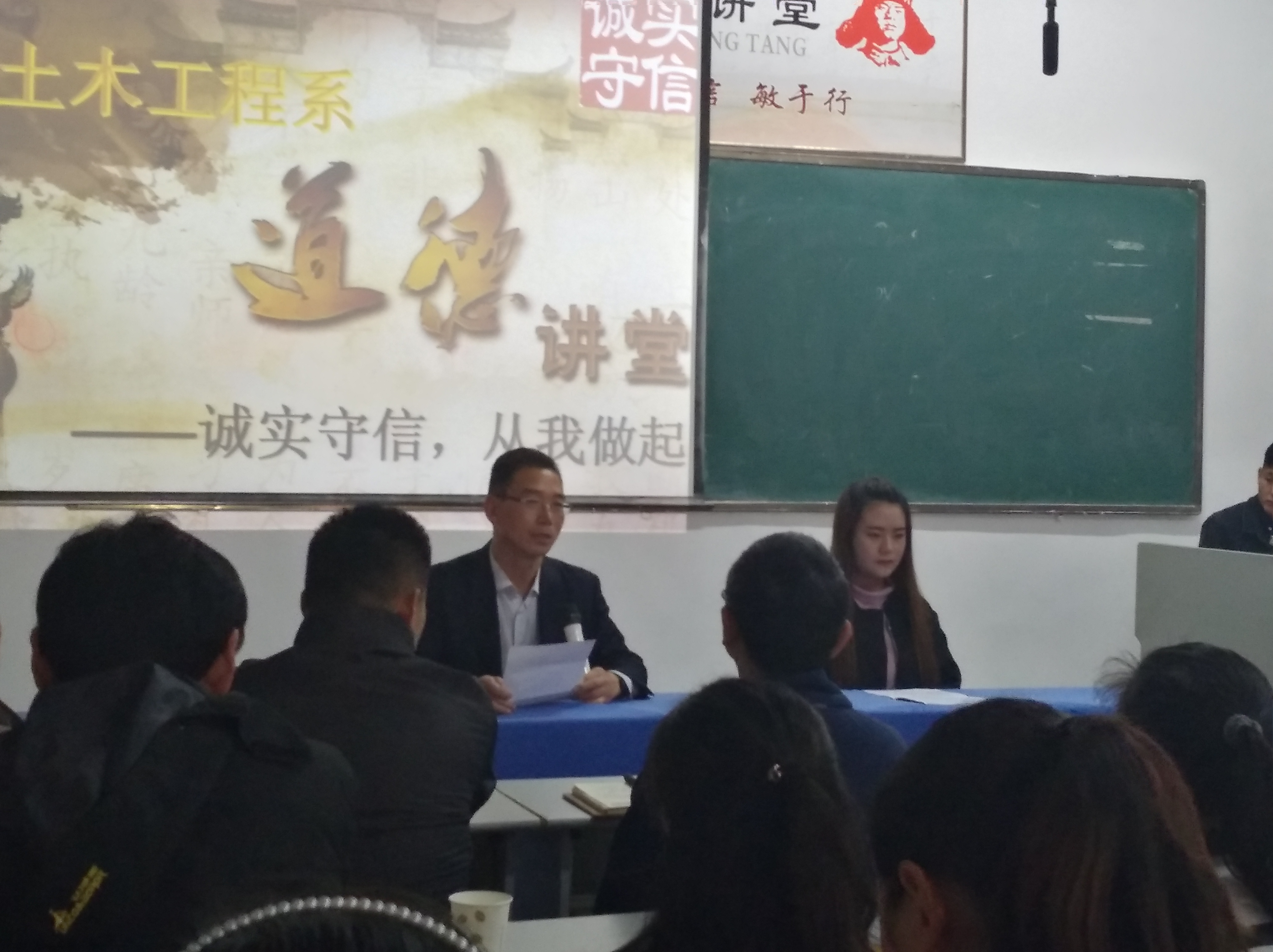 2017年11月9日,土木工程系在综合楼408教室“诚实守信,从我做起”为主举行道德讲堂活动,系负责人、全体教师和学生代表参加活动