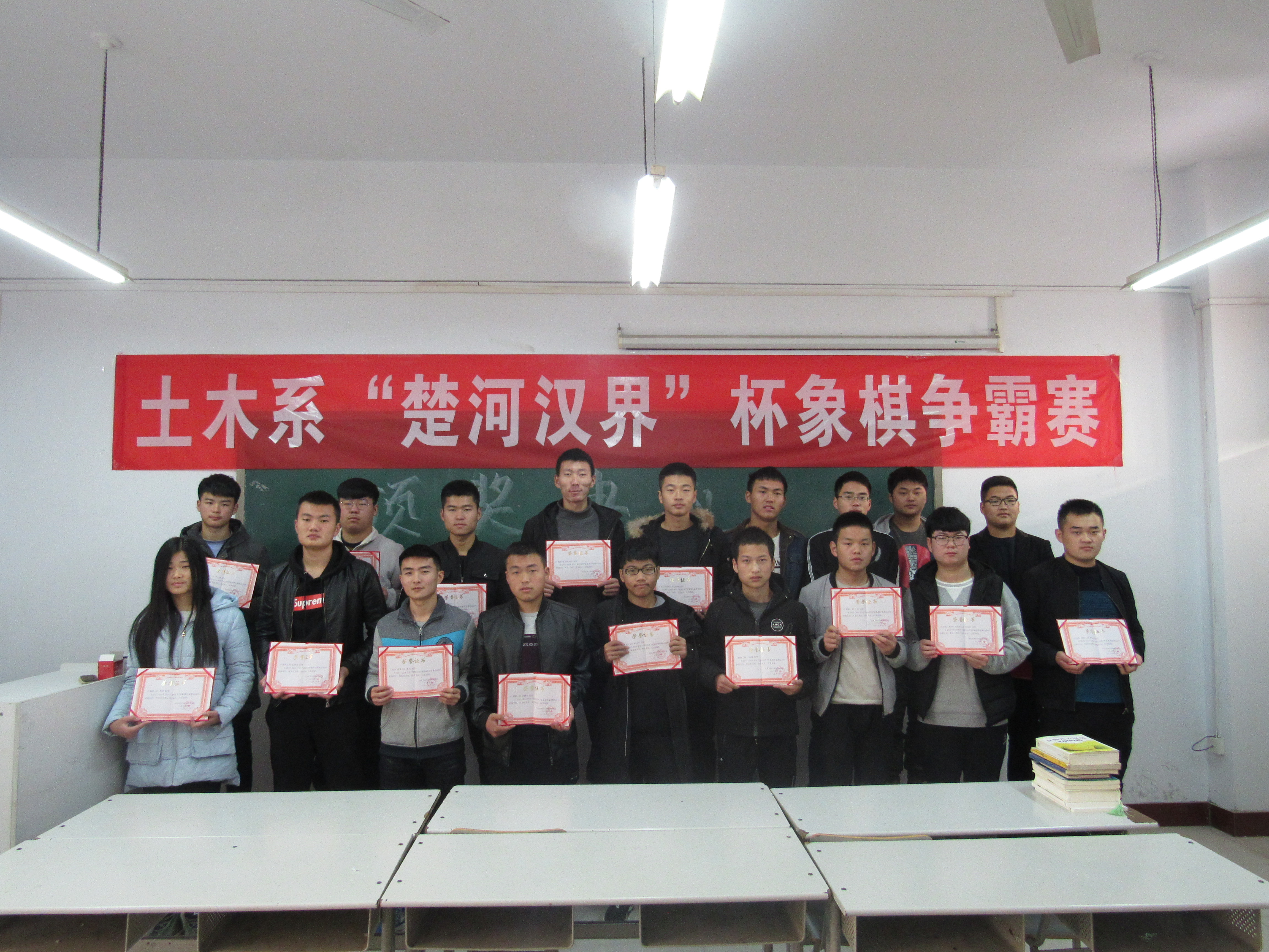 经过3天的激烈角逐,最终决出9名优秀棋手。171611班闫山获得一等奖;161212班张晓帆、171212班陈宇翔、171031班杨宽获得二等奖;161031班常连发、161191班王海振、171031班王文琦、172191班刘欢、172191班左洪沛获得三等奖。