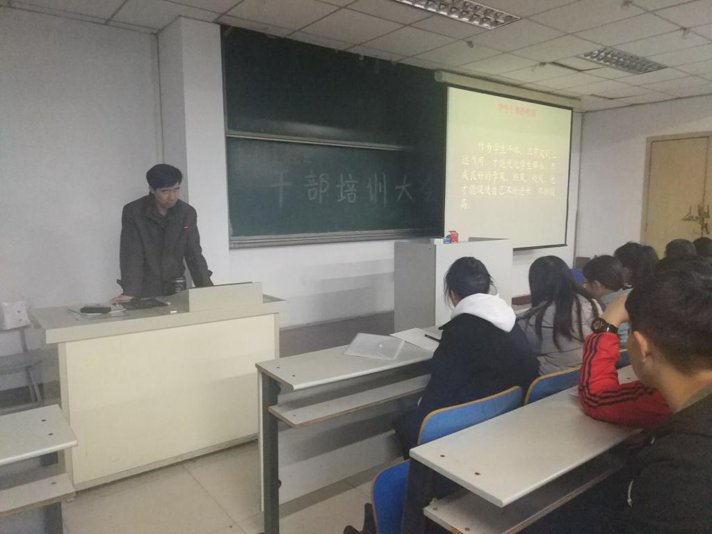 2017年12月5日19:00,水利工程系举行学生干部培训大会,由系副主任王建军主讲。