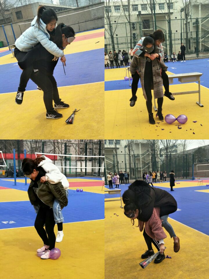 2018年3月7中午,机电与信息工程系在学院排球场举办了女生节活动,此次活动得到了女生积极参与,加强了同学之间沟通,丰富了大家的校园生活。图为女生合作踩气球。