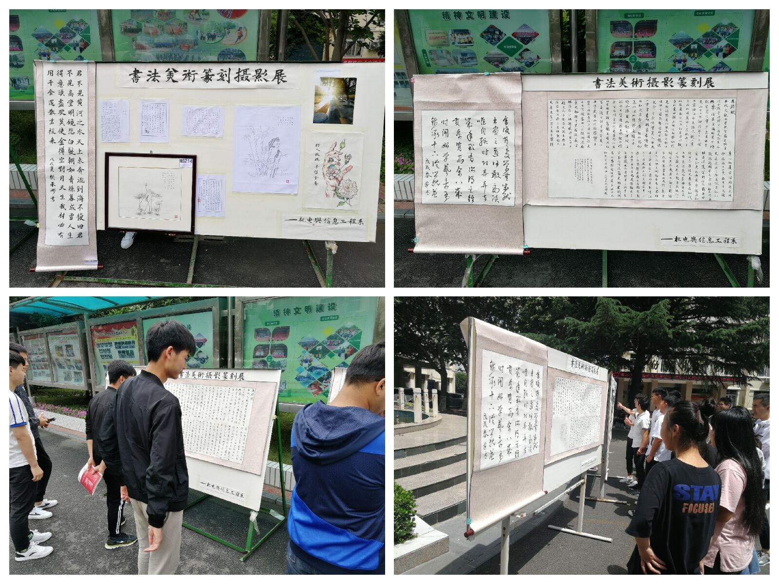 为丰富校园文化生活,营造浓厚文化氛围,促进学生健康成长,机电与信息工程系开展了校园书法、美术、篆刻、摄影大赛。经过半个月的征集阶段,于5月22日在校园主干道对参加活动的十余件优秀作品进行展览,并从其中选拔出3件作品推送至河南省第十六届科技文化艺术节承办单位参与全省评比。