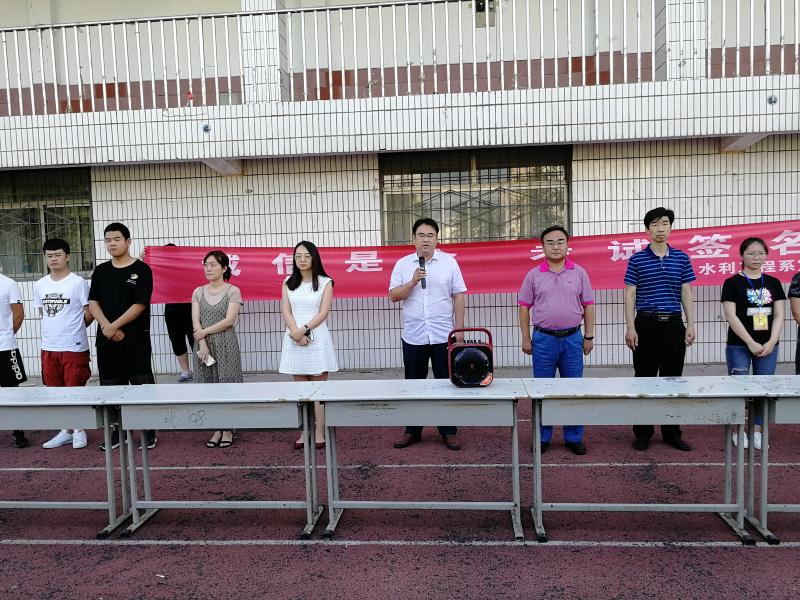 为增强同学们的诚信意识,严肃考风考纪,水利工程系于2018年6月5日在运动场举办了“诚信是金”签名活动。