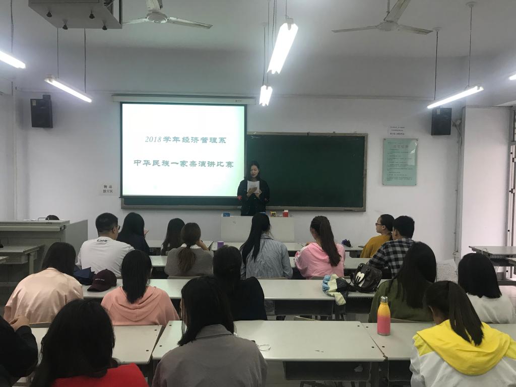 为进一步激发学生的爱国精神和以爱国主义为核心的民族精神,增强当代大学生的社会责任感,促进民族团结进步,经济管理系于2018年9月18日下午3:00在南教303教室举办了“中华民族一家亲,同心共筑中国梦”主题演讲比赛。