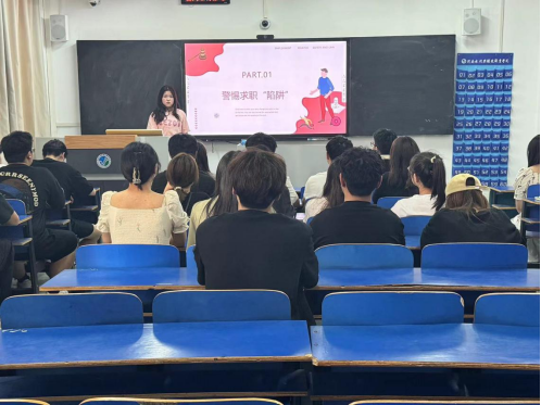 在前期调研的基础上,活动组委会借助真实的案例为同学们讲解了求职过程中可能会遇到的陷阱,让学生们了解求职风险,提高安全防范意识;活动组成员还详细讲解了求职过程中简历制作规范、面试礼仪、面试技巧等,对同学们进行了简单的培训。37名参与同学在认真准备的基础上,进行了模拟面试,“面试官”们对面试过程中同学们出现的问题进行了逐一点评。