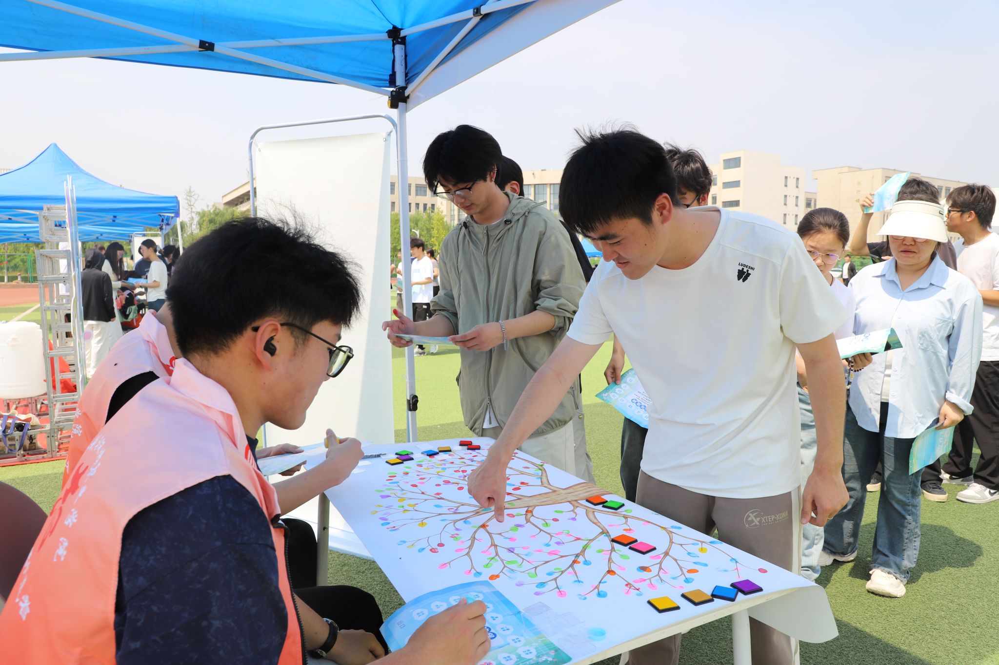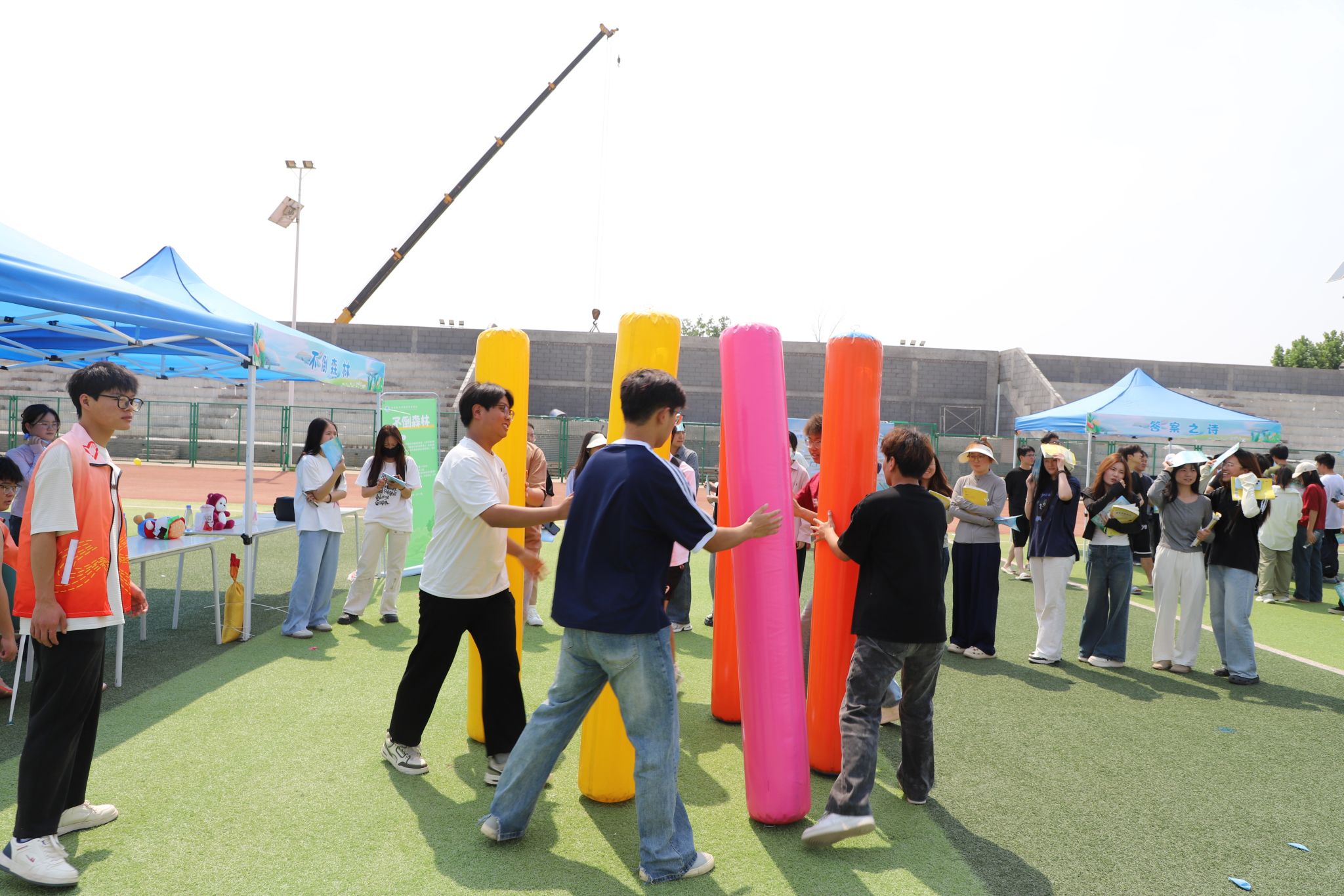 作为“5·25大学生心理健康教育宣传月”系列活动的重磅活动,本次心理嘉年华以“培育积极心态,增强心理韧性”为主题,由党委学生工作部、校团委、心理健康中心联合策划。活动精心打造五大主题共13个特色项目。在趣味游戏区,“打地鼠”“一锤定音”等减压游戏吸引众多学生踊跃参与;挑战自我区的“疾风骤雨”“目标锚定”项目激发个人潜能;心灵之约区以“手掌树”“快乐出发”为载体传递幸福体验;团队合作区“神笔马良”“穿越雷区”等活动培养了学生的协作精神;自我探索区则依托“缤纷世界”“答案之诗”等项目引导学生深化自我认知。活动现场师生互动频繁,欢声笑语中传递着成长的能量与情感的共鸣。